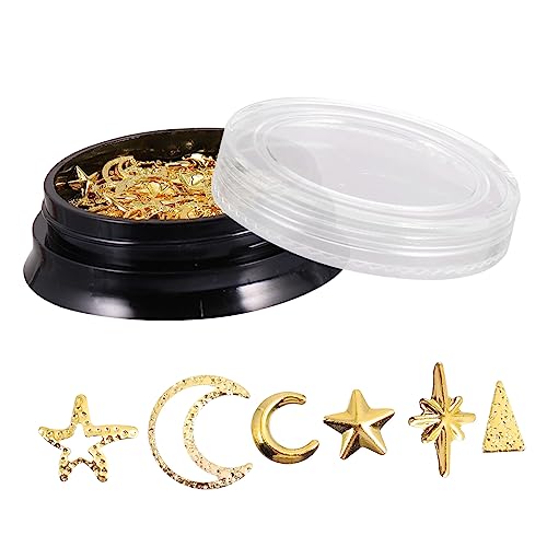 ملصقات تزيين الأظافر على شكل نجمة وقمر مصنوعة من خليط معدني لتزيين الأظافر، عبوة اقتصادية وصندوق تخزين ومشاريع الحرف اليدوية من فوميز