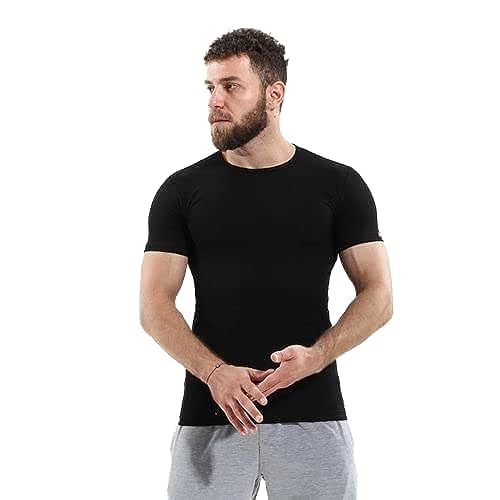 فانلة من القطن المرن للاولاد باكمام قصيرة قطونيل - لون اسود مقاس 6 S