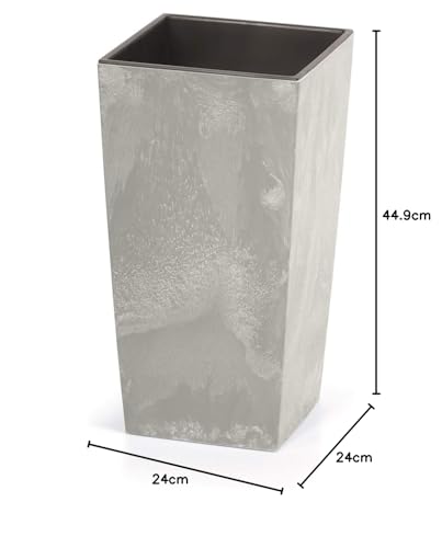 أصيص زهور أوربي مربع بمظهر الخرسانة من بروسبيربلاست، مقاس 24 سم، لون رمادي