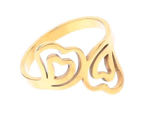 خاتم عصري من الستانلس ستيل على شكل قلب مقاس 17 للنساء من بوكس هودوم، ذهبي B-O-X-R-33