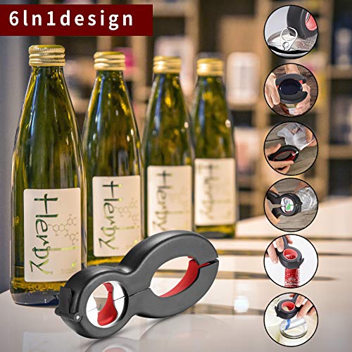 أداة مفتاح متعددة الاستخدامات 6 في 1 لفتح الزجاجات والعلب وجميع أنواع الأغطية بقبضة من الفولاذ المقاوم للصدأ، أداة لف الأغطية للمطبخ، مناسبة للأطفال وكبار السن وأصحاب الأيد الضعيفة