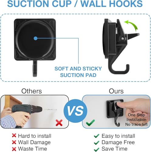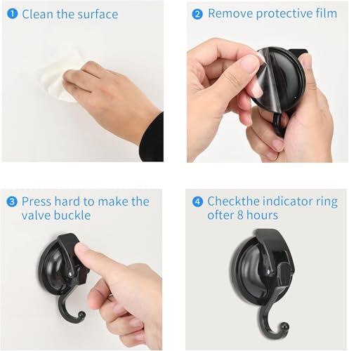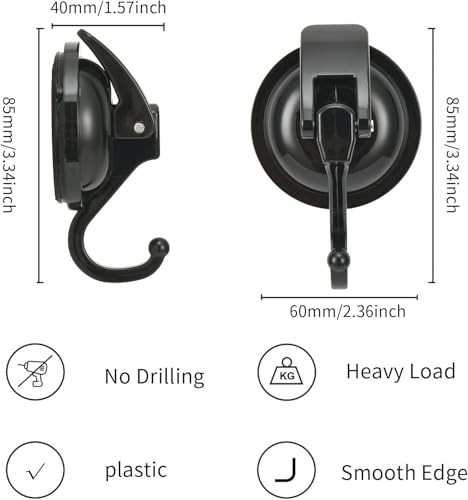 - شفط مزود ويدوم طويلاً: مصنوع من مادة مطاطية ألمانية عالية الجودة لقاعدة الشفط، مما يضمن أن الخطاف يمكنه تحمل حمولة قصوى تصل إلى 13 باوند ويبقى مثبتًا لفترة طويلة.