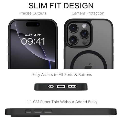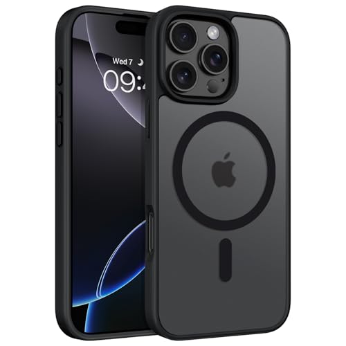بينتوبين حافظة حماية مغناطيسية متوافقة مع موبايل ايفون 16 برو، [متوافقة مع ماج سيف] حافظة حماية مغناطيسية مضادة للصدمات ومضادة للصدمات والسقوط للبنات والنساء والاولاد والرجال - اسود