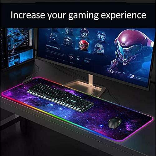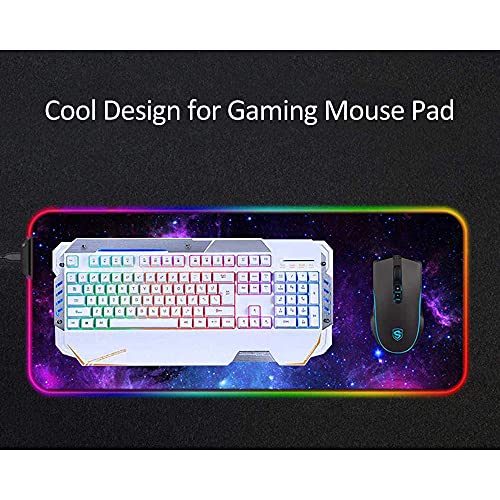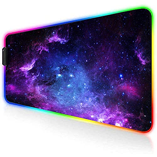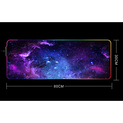قاعدة ماوس للالعاب من جالاكسي مضيئة بفضاء لوني ار بي جي 80 × 30 سم للوحة المفاتيح والماوس بحواف ممتدة وتصميم مخيط - 12 وضع اضاءة - كابل مضفر - مقاومة للماء - قاعدة من المطاط لمنع الانزلاق