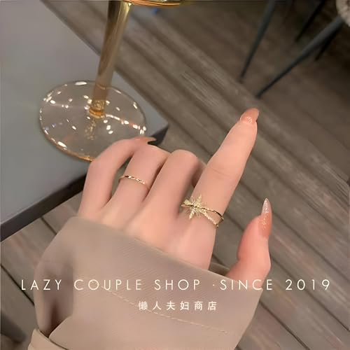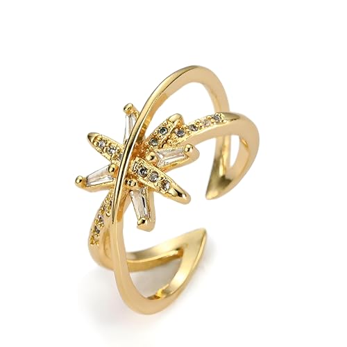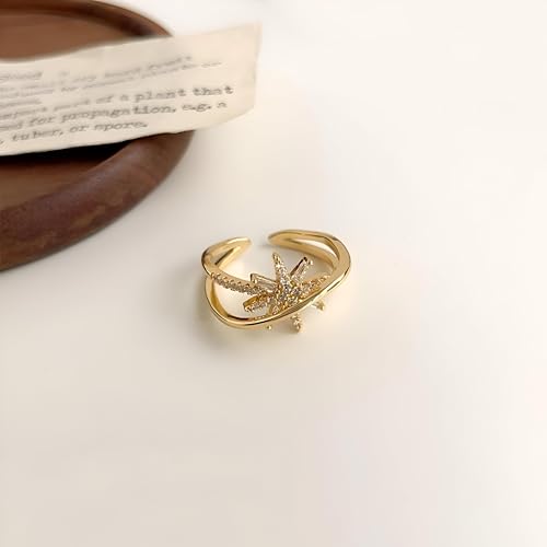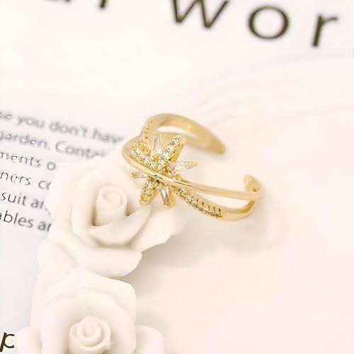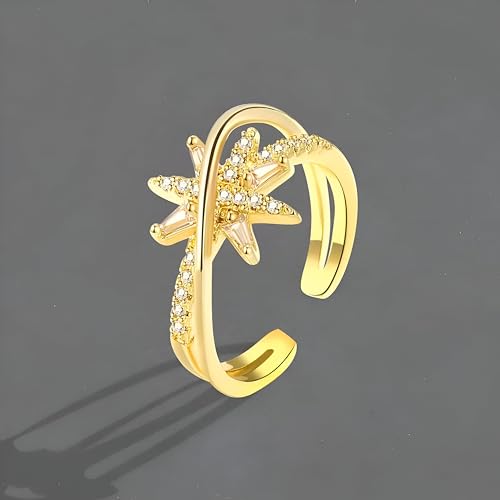 اكسسوار مجوهرات - خاتم ستار برست قابل للتعديل بلون ذهبي مع تصميم شريط مفتوح لتصميم عصري وأنيق