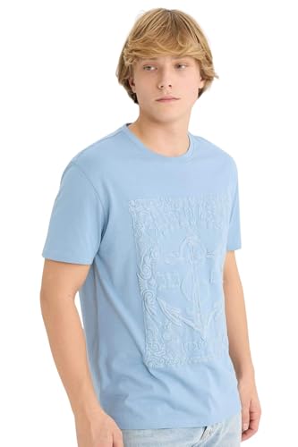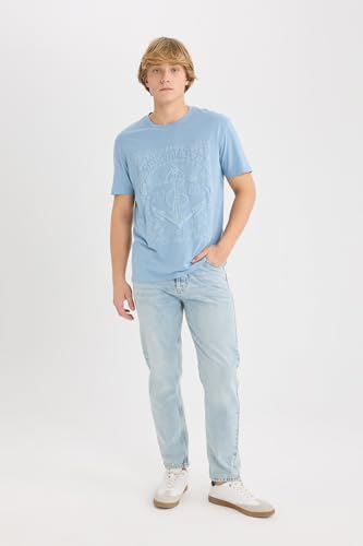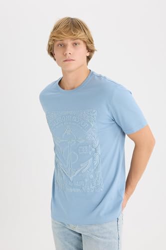 ديفاكتو تيشرت شبابي منسوج بقصة عادية ورقبة دائرية ضيقة واكمام قصيرة للرجال D8203AX، لون ازرق، مقاس L
