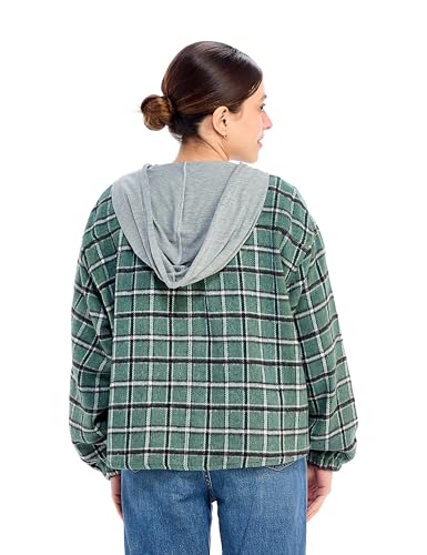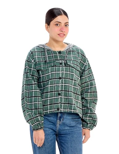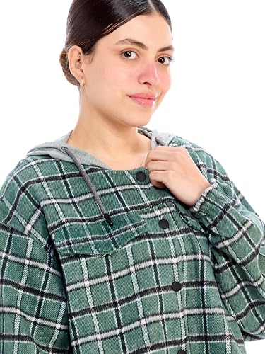 ريفين جاكيت بغطاء للرأس بنقشة مربعات للنساء - رمادي عصري