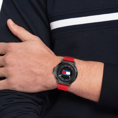 ساعة أنالوج كوارتز بسوار سيليكون بلون أحمر 1792033 للرجال من تومي هيليفيجر