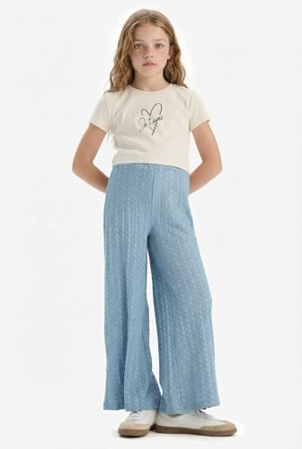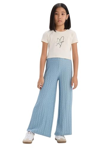 ديفاكتو طقم ملابس كاجوال باكمام قصيرة للبنات - طقم محبوك بارجل واسعة، اكرو لعمر 11/12 سنة