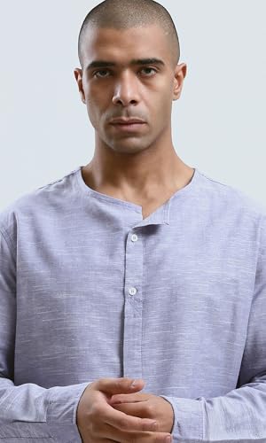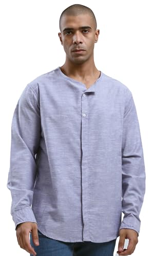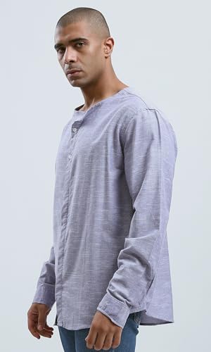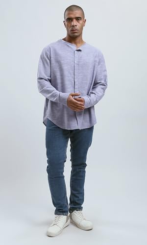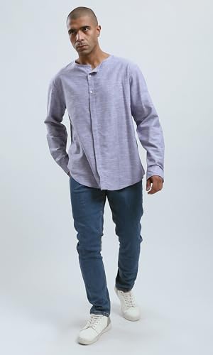 قميص حديث بأزرار وقصة مريحة للرجال بلون ارجواني فاتح مزرقش من ريفين