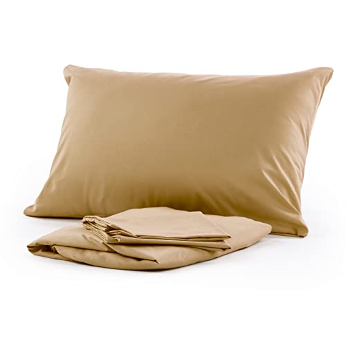 طقم ملاية سرير قطن بقصة محكمة 160سم مع كيسين للمخدات من رونجي، لون بيج كافيه