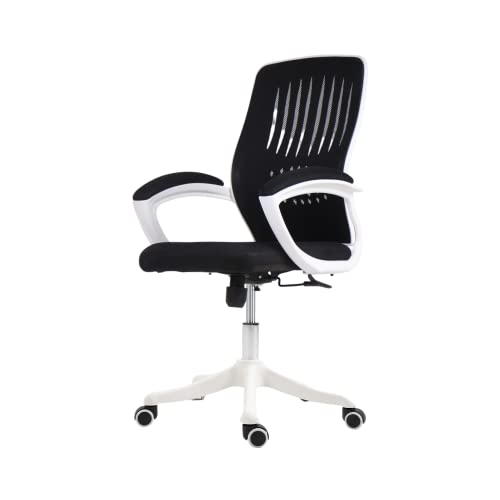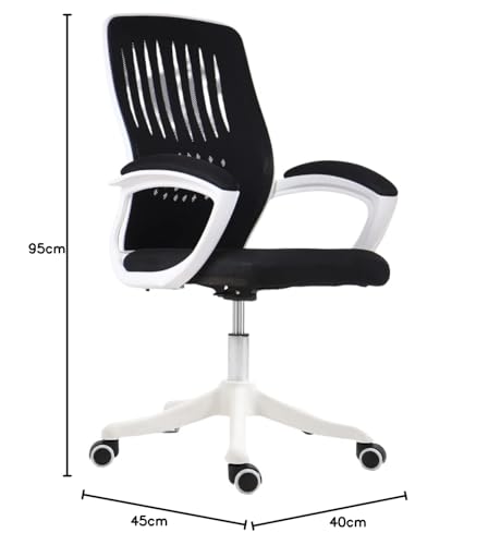 كرسي مكتب بتصميم شبكي متعدد المقاسات بهيكل أبيض مصمم بأناقة وراحة فائقة ويمنح ظهرك دعما جيدا أثناء العمل من دريم ديسك (لون أسود ومقاس متوسط)
