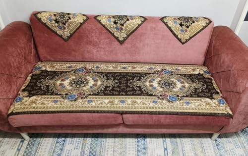 - طقم كنبة زاوية من الكتان بنمط باقة، 12 قطعة - بني: غني وطبيعي، مما يخلق شعورًا مريحًا وترابيًا.