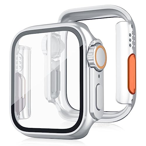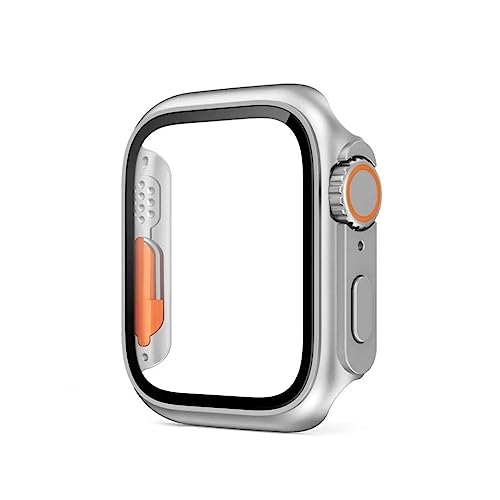 هيكل حماية متوافق مع ساعة ابل 45 ملم 49 مقاوم للصدمات والخدوش تمامًا شاشة بتصميم مريح من انفين - لون فضي زجاج مُقسٌى