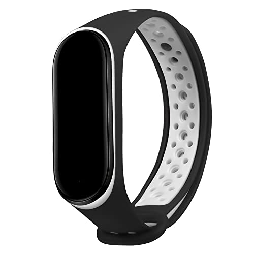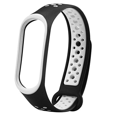 سوار من السيليكون الناعم مقاوم للماء متوافق مع ساعة مي باند 4، سوار لساعة شاومي مي باند 4 ومي باند 3 من هامبل (لون أبيض وأسود)