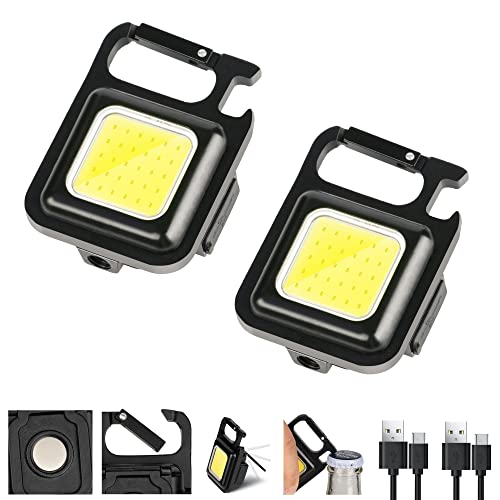 مصباح اضاءة صغير سي او بي، مصباح اضاءة صغير قابل لاعادة الشحن 800 لومن مع سلسلة مفاتيح 3 اوضاع اضاءة من كلاكاب، مصباح جيب سهل الحمل بدعامة قابلة للطي وفتاحة زجاجات وقاعدة مغناطيسية، 2 قطعة