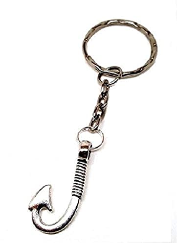 سلسلة مفاتيح علي شكل خطاف صيد السمك مع سلسلة 8سم، خامات متعددة، أبيض