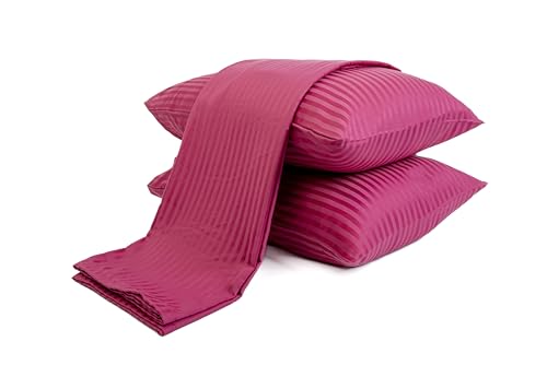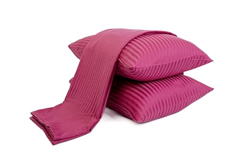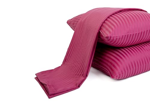 طقم ملاية مسطحة مخططة بجودة عالية للفنادق وديكور المنزل من 1 180 سم × 240 + 2 كيس مخدة 50 70 مناسب لمراتب حتى 30 قطن مصقول هوم اوف لينين فوشيا مُخطط