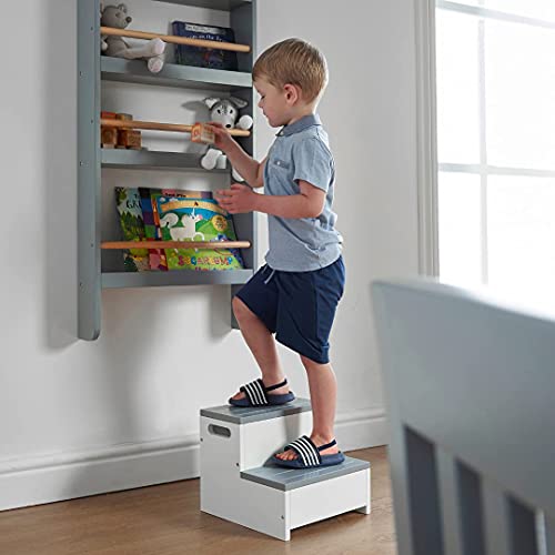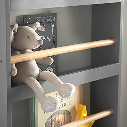 خزانة كتب للأطفال بتصميم مفتوح يثبت على الحائط ورف ألعاب ومنظم وخزانة تخزين متعددة الأغراض بلون أبيض/خشبي بأربع طبقات، خزانة كتب جدارية من هاوس بروجيكت، رمادي