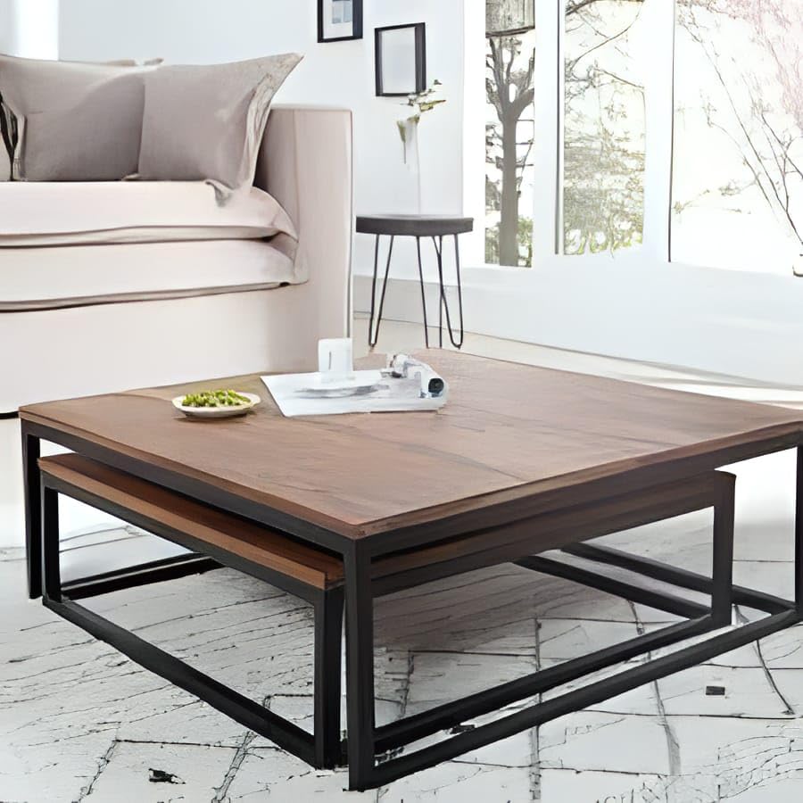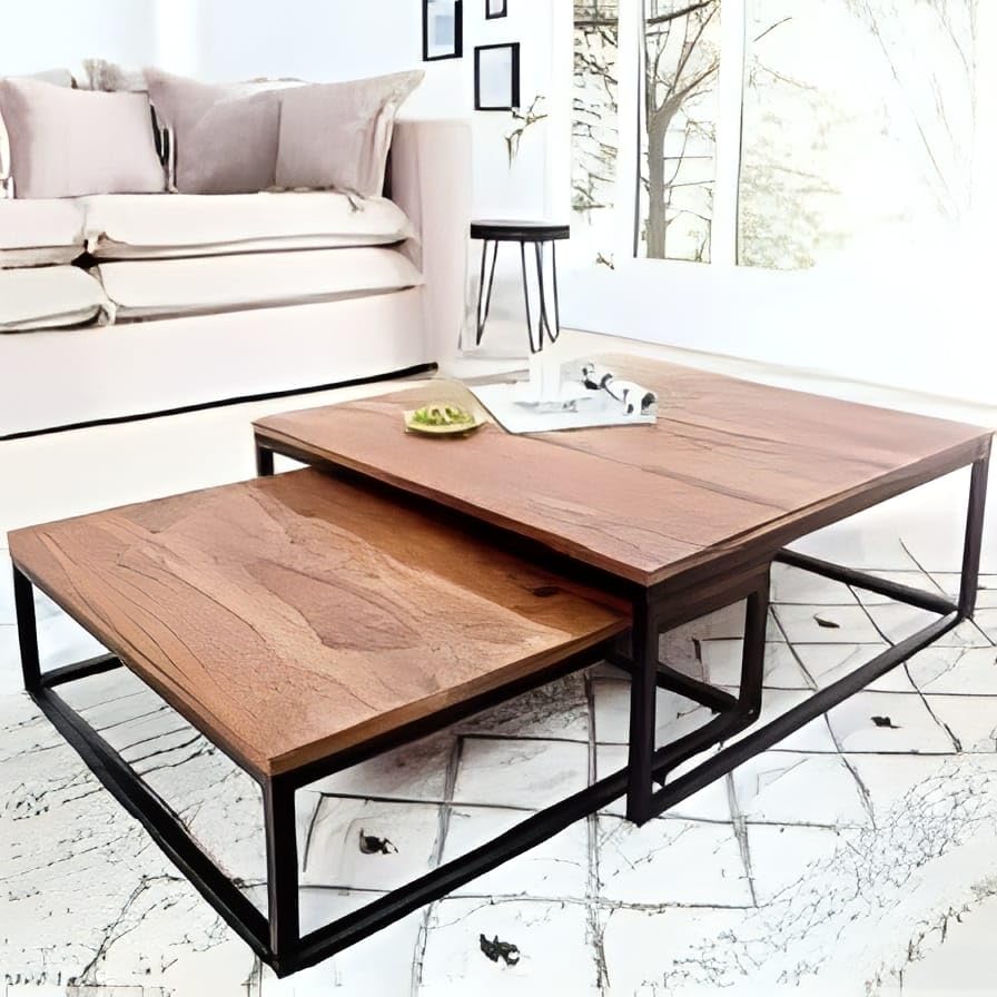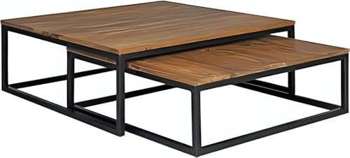 مجموعة طاولة مركزية مصنوعة من الصلب مكونة من قطعتين من ايه ار كورنر، M0215، أسود / بني