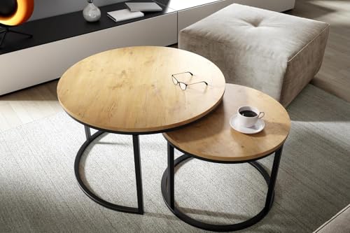 طقم طاولة قهوة من فيرني فلكس، لون بلوط/أسود
