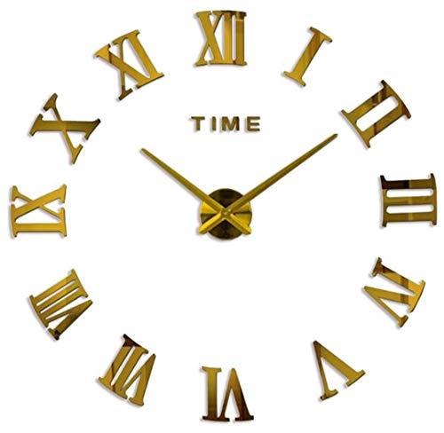 ساعة حائط ثلاثية الابعاد ملصقة رومانية الاحرف مقاس كبير بأبعاد 110 في فأقل سم لون ذهبي بلاستيك تناظري