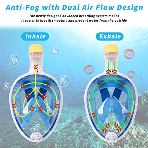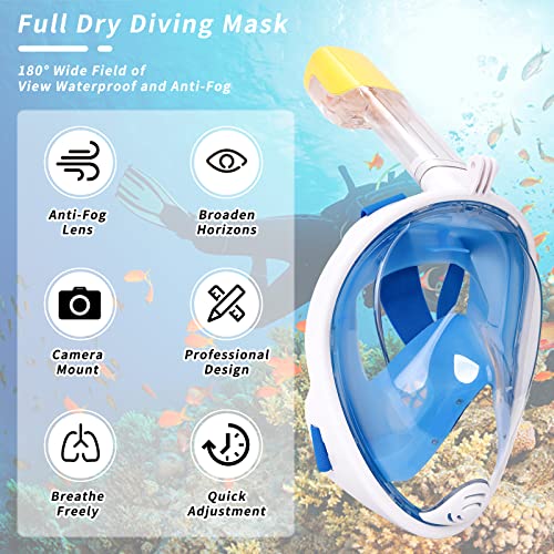 قناع غوص لكامل الوجه، قناع غوص احترافي بانورامي بزاوية 180 درجة مضاد للضباب والتسريب، قناع تنفس جاف للأطفال والكبار مع فتحة كاميرا قابلة للفصل
