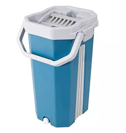 كيه بي اس ممسحة مسطحة براس مرن 360 درجة مع وسادات مايكروفايبر فائقة الامتصاص تعمل بالضغط بدون استخدام اليدين ومقبض ممتد من الستانلس ستيل للمنزل والمطبخ (ازرق-مسطح-MOP-KBS)