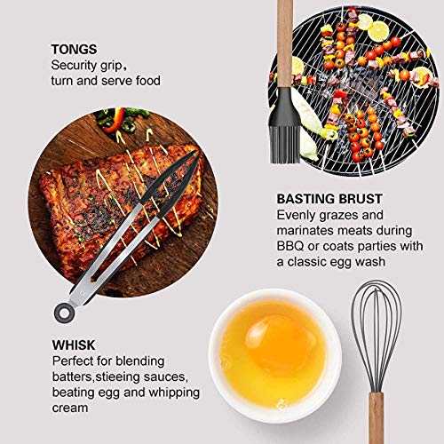 - 【مادة سيليكون آمنة غذائيًا】طقم التوزيع للمطبخ الذي نقدمه مصنوع بمقبض خشبي ناعم من مادة السيليكون الخالية من البيسفينول أ والمعتمدة من إدارة الغذاء والدواء الأمريكية. مصنوعة من سيليكون صديق للبيئة آمن غذائيًا وغير لاصق، يتحمل درجات الحرارة العالية حتى 500 درجة فهرنهايت، لا داعي للقلق من ذوبانه إذا تركته في الوعاء عن طريق الخطأ لفترة من الوقت.