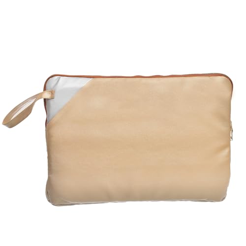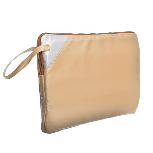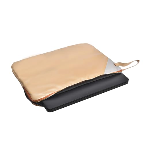 حافظة لاب توب من الجلد بلون ذهبي فاتح سادة مقاس 38 - 39 سم مع جيب بسوستة وحزام جانبي شنطة بتصميم نحيف متوافقة أجهزة ماك بوك واللاب اكسيليريت للبالغين الجنسين