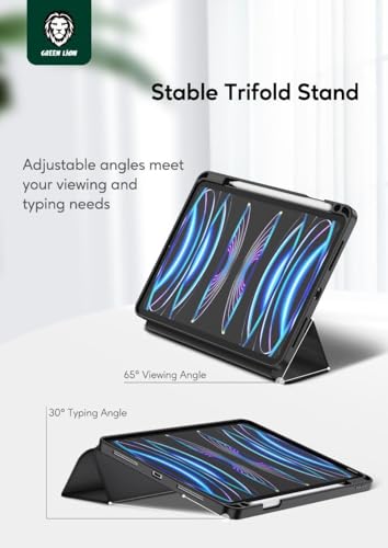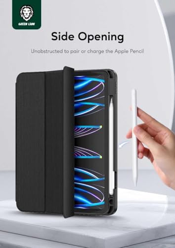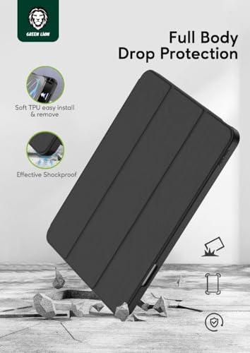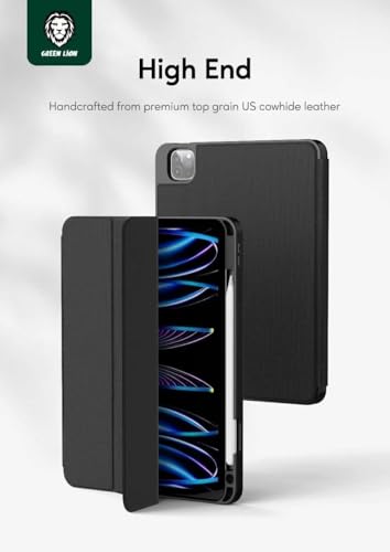حافظة تابلت هوجو الجلدية الفاخرة من جرين ليون مع حامل قلم لجهاز الأيباد 10.2 بوصة، وحامل ثلاثي الطيات ثابت، حماية كاملة من السقوط، من البولي يوريثين الحراري الناعم سهل التركيب والإزالة، خاصية التنبيه/