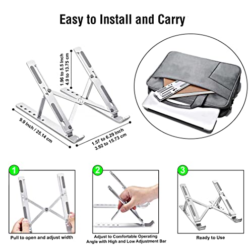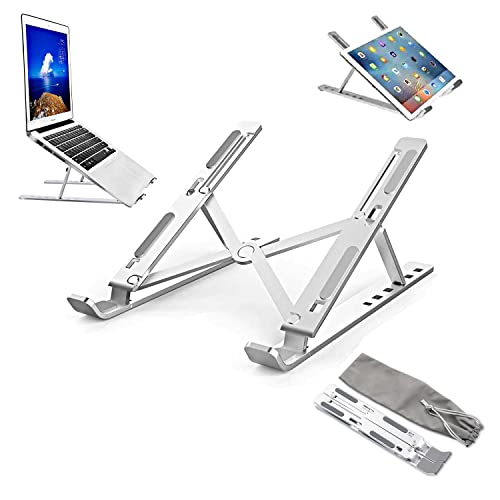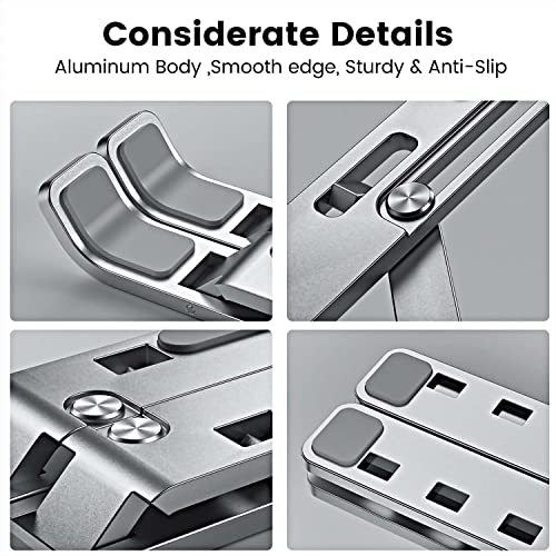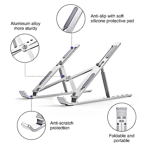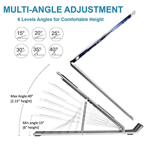 حامل لاب توب للمكتب محمول قابل للتعديل من الألومنيوم بـ 6 مستويات مضاد للانزلاق متوافق مع ماك بوك برو اير وديل واسوس واتش بي 10-15.6 بوصة فضي اكس باور