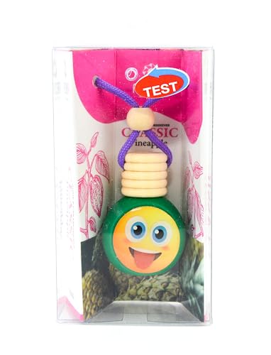 معطر جو للسيارة فريش اب برائحة الأناناس بتصميم وجه مبتسم - زجاجة 10 مل (قد يختلف الرمز التعبيري والتعليق)