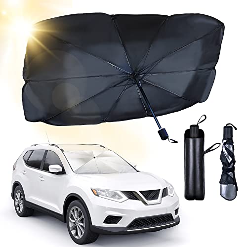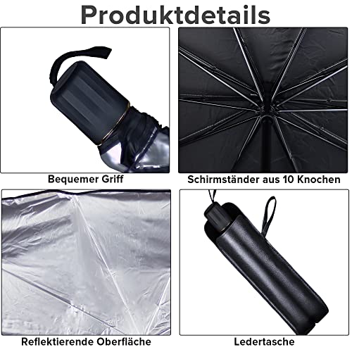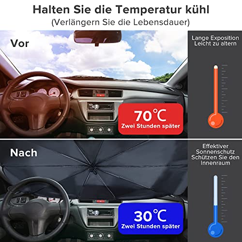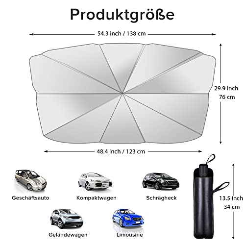 - مظلة واقية من الشمس للزجاج الأمامي للسيارة مع عمود قابل للتعديل، مظلة سيارة للحماية من الأشعة فوق البنفسجية بتصميم قابل للطي وسهل التخزين