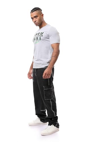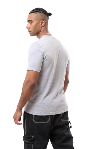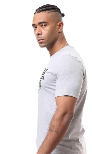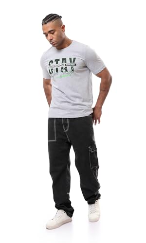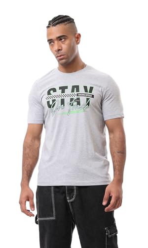 ريفين تي شيرت رجالي عصري مطبوع عليه عبارة "Stay On Track" رمادي مرقش