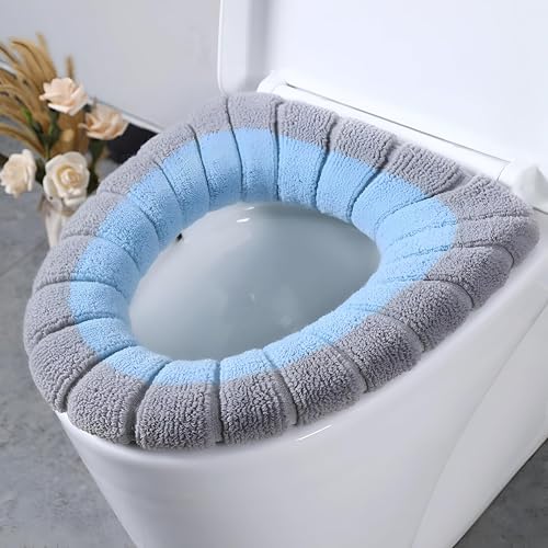 غطاء تدفئة مقعد المرحاض من البوليستر الناعم - قابل للغسيل ومتين - تصميم قطعة واحدة بألوان متعددة، لتجربة حمام مريحة وأنيقة