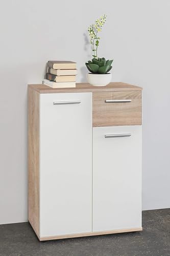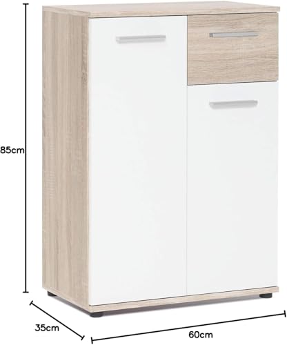دولاب جانبي جاك بأبواب وأدراج من فورني فليكس، 60 سم × 85 سم × 35 سم، بلوط/أبيض