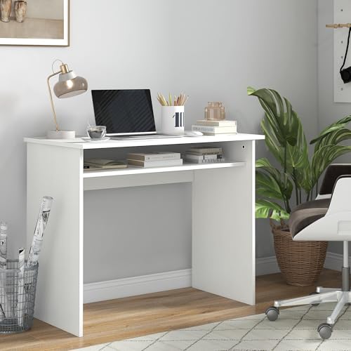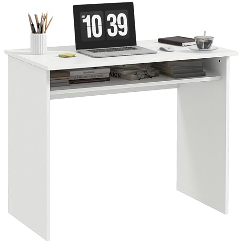 مكتب كمبيوتر مع أرفف تخزين من فيرني فليكس، مقاس 90 × 50 سم، أبيض