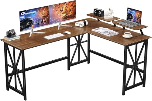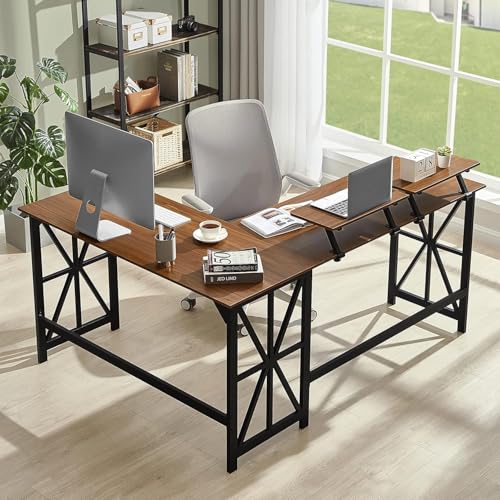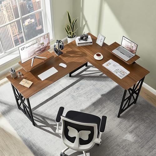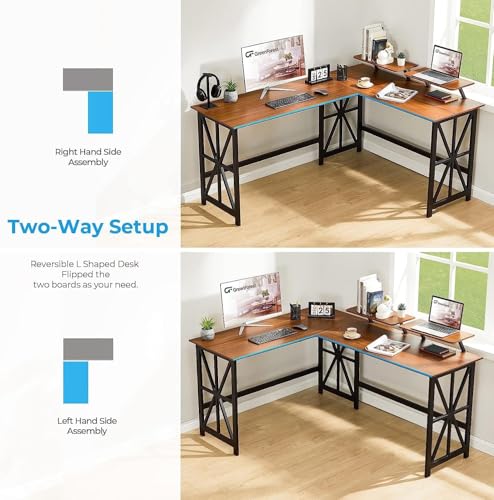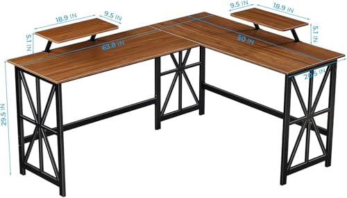 مكتب كمبيوتر على شكل L مع حامل شاشة من فيرني فلكس، لون بيج عين الجمل، مقاس 1.62 م