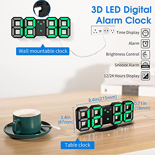 ساعة حائط مع ضوء LED ثلاثي الابعاد من سينتولا، ساعة حائط 8.4 بوصة، ساعة مع ضوء LED ثلاثي الابعاد و3 مستويات قابلة للتعديل للسطوع للمنزل والمطبخ والمكتب (مع كابل/لا تعمل بالبطارية)، بلاستيك، أسود وأخضر