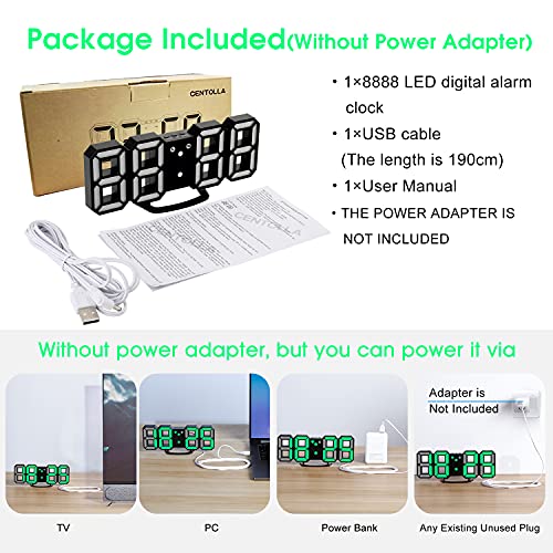 - الساعة ثلاثية الأبعاد يمكن أن تعمل فقط مع توصيل الطاقة. يمكن توصيله بكابل USB أو محول تيار متردد. كابل USB مرفق بساعة منبه عند الشحن