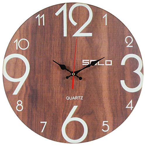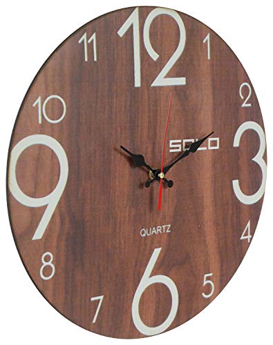 ساعة حائط خشب دائرية انالوج بعقارب من سولو B83 - 40 سم، متعدد الألوان