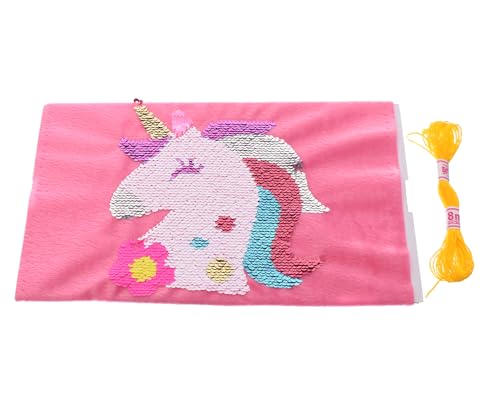 مخدة قطيفة مزينة بالترتر بتصميم يونيكورن وإضافة المزيد من المرح للبنات - متعددة الالوان من اكسيسوريز شوب