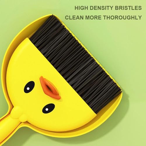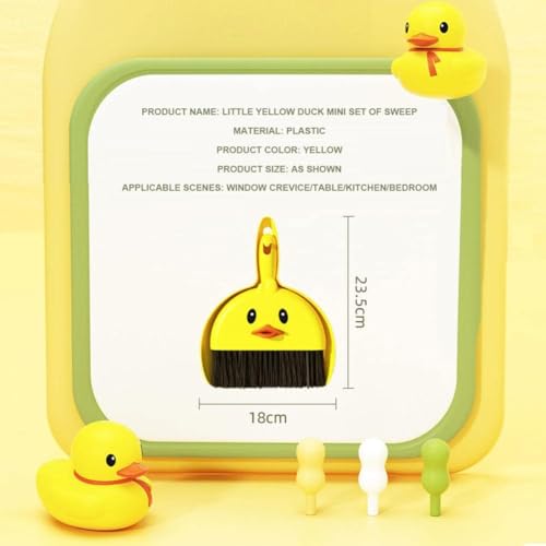 - 🏡 المنتج عبارة عن مجموعة مكونة من قطعة واحدة من المكنسة والمجرفة الصغيرة متعددة الوظائف، مصممة بشكل فريد مع موضوع الرسوم المتحركة Little Yellow Duck الرائع، مما يضيف لمسة غريبة إلى وظيفتها.