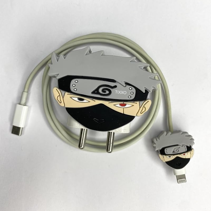 مجموعة واقي كابل وشاحن من السيليكون الصلب CH-003 من جي باور - شخصيات كرتونية من 2 قطع، متعددة الألوان