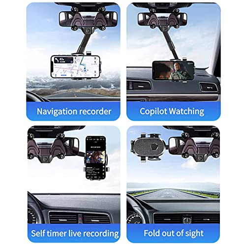 حامل موبايل لمراية صالون السيارة 2022 من يوفوكو، حامل موبايل متعدد الوظائف قابل للسحب يدور 360 درجة، حامل عالمي لمراية صالون السيارة، متوافق مع جميع الموبايلات