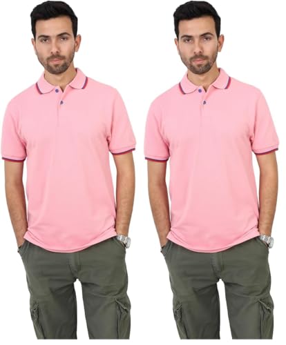 قميص بولو للرجال من سوتكس مع شريط على القبة، بينك، مقاس L (عبوة من قطعتين)
