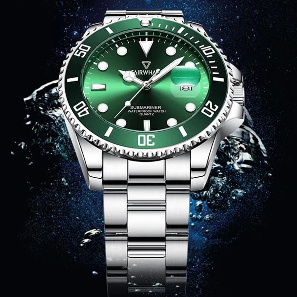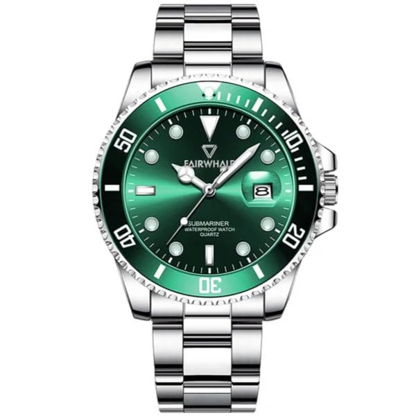 ساعة ستانلس ستيل للرجال من فيرويل FW-5420-1، مقاس 40 ملم، فضي/اخضر، تناظري