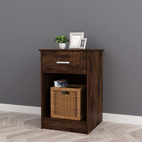 طاولة أخيرة من رامزو، مصنوعة من MDF وخشب صلب، مع درج للتخزين، باللون البني، بأبعاد 40.64 × 40.64 × 60.96 سم