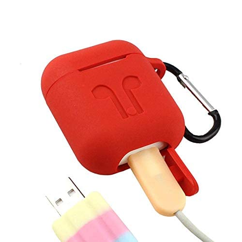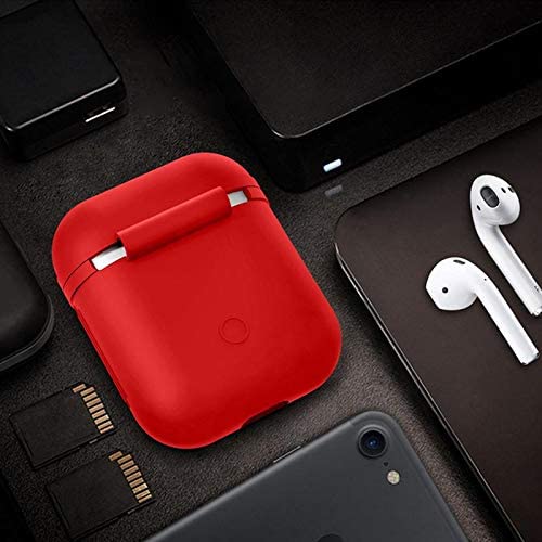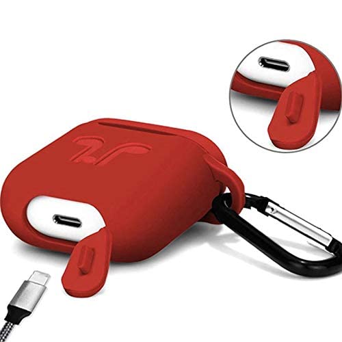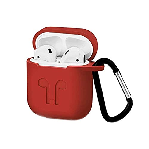 حافظة واقية من السيليكون مع حزام المطاط لهواتف ابل ايربودز - احمر